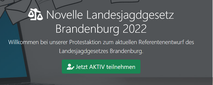 In Brandenburg steht immer noch der umstrittene Jagdgesetzentwurf von Grünen-Minister Axel Vogel im Raum. Damit dieser endgültig gekippt wird, zählt jetzt jede Stimme. Per BRIEFGENERATOR des LJV Brandenburg können Sie mit zwei Klicks den zuständigen Minister Vogel und Ministerpräsidenten Woidke kontaktieren und darauf aufmerksam machen, dass gute Gesetze nur im Dialog entstehen.