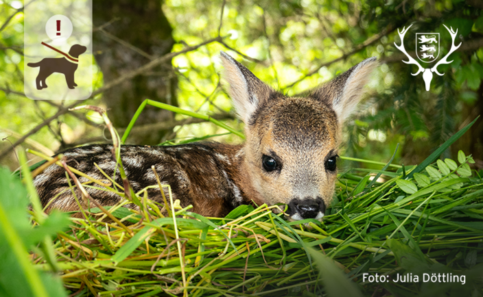Die Jungtiere in Feld und Wald sind nun auf Ihre Rücksichtnahme angewiesen. Bitte bleiben Sie auf den Wegen, egal ob Sie zu Fuß oder mit dem Fahrrad unterwegs sind und LEINEN SIE IN JEDEM FALL IHRE HUNDE AN! Denn Junghasen und Rehkitze brauchen dringend Ruhe. Sie liegen, von ihren Müttern gut versteckt, alleine auf dem Feld und in der Wiese. Das gehört zur Überlebensstrategie, um nicht von Fressfeinden gefunden zu werden.
