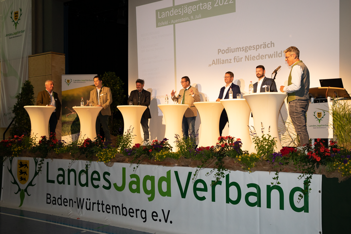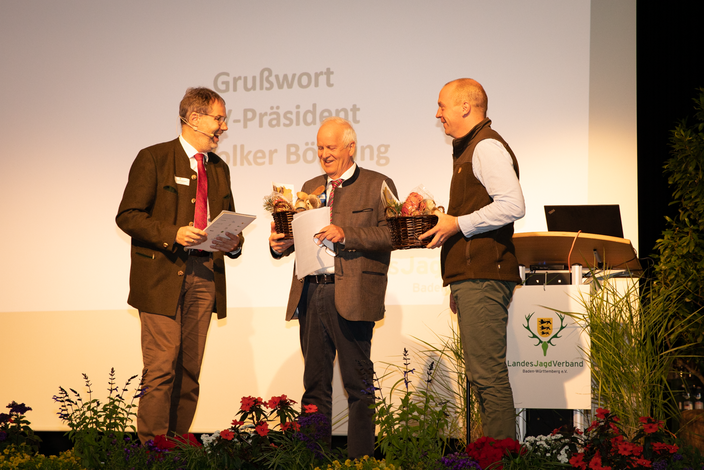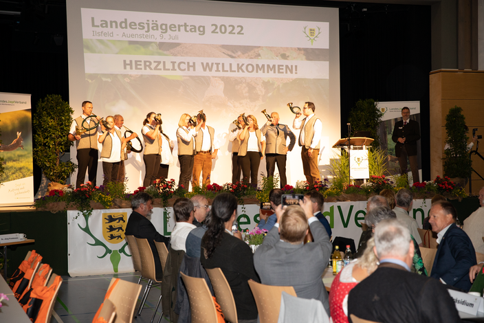 Die Delegiertenversammlung des Landesjägertags, die am Nachmittag stattfand, wurde von Landesjägermeister Dr. Jörg Friedmann eröffnet. Sie ist das höchste Beratungs- und Entscheidungsgremium des Landesjagdverbands Baden-Württemberg e.V. Die 236 Delegierten der regionalen Jägervereinigungen Baden-Württembergs, der außerordentlichen Mitglieder und der Mitglieder des LJV-Präsidiums tagen einmal jährlich an wechselnden Orten im Land. Der LJV vertritt die Interessen von rund 33.500 Jägerinnen und Jäger in Baden-Württemberg.
