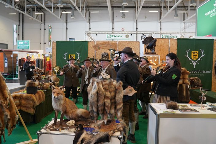Der Vortrag zum Thema „Jagd in den Sozialen Medien“ auf der Schaubühne in Halle 5 zeigte, wie wichtig es ist, die Jäger über die Gefahren aber auch über die durchaus positiven Seiten der virtuellen Welt hinzuweisen. Abgerundet wurde die Messe durch regelmäßig ertönenden Hörnerklang verschiedener Bläsergruppen.