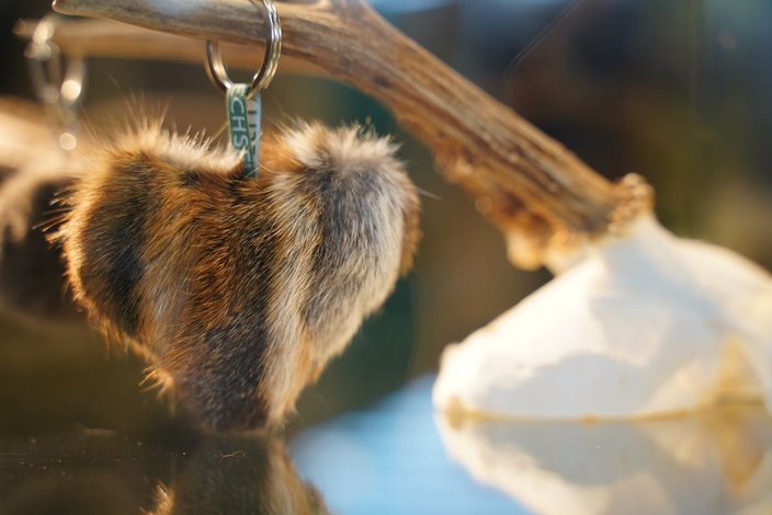Am Messestand des LJV stand das Thema Raubwild im Fokus. Gemeinsam mit Fellwechsel und Schwarzwaldpelz gab es schöne und vor allem nachhaltige Produkte zu erwerben. Kinder durften Ketten aus Fuchshaken, Teilen von Rehabwurfstangen und bunten Perlen basteln. Diese präsentierten sie anschließend stolz.