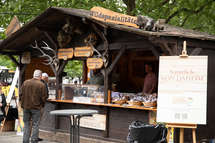 (Stuttgart, 17. Mai 2024) Der Stuttgarter Schlossplatz wurde am 15. Mai zum „Place to be“ für Grill-Begeisterte und Wildbretliebhaber. Der Landesjagdverband Baden-Württemberg e.V. (LJV) hatte zur „wilden“ Mittagspause eingeladen. Wildanbieter und Grillprofis aus ganz Baden-Württemberg servierten wilde Hot-Dogs, butterzarte Wildsau am Spieß, gebratene Maultaschen und Grillwurst von Wildschwein und Reh.