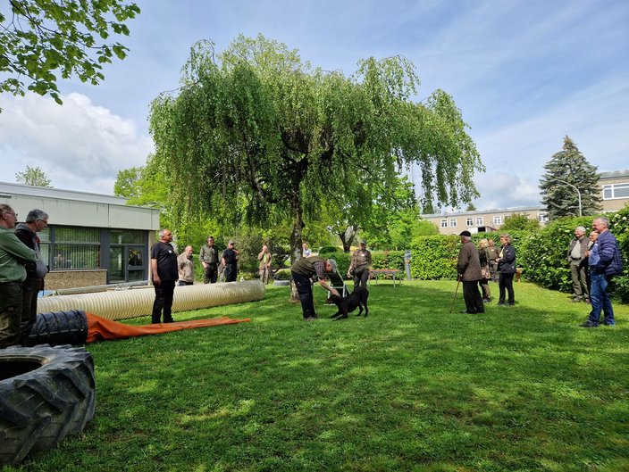 Am Samstag, 6. Mai kamen gut 50 interessierte Jäger und Hundeführer ins Training Center Retten und Helfen nach Mosbach, um sich über das Kadaversuchprojekt zu informieren. Zu Beginn begrüßte BRH-Präsident und Projektleiter Jürgen Schart die Teilnehmer und stellte das Projekt vor. Danach gab Projektkoordinatorin Dr. Christina Jehle einen Überblick über die Anforderungen an ein Kadaversuchteam, den aktuellen Stand der Bewerbungen und den Kursablauf. Michael Müller vom Referat Einsatz erläuterte den Ablauf eines Einsatzes der ASP-Kadaversuchteams und die Dienstleistungen des TCRH für die Behörden im Seuchenfall. Im Anschluss daran führte Ausbildungsleiter Kai Uwe Gries die Teilnehmer im Freigelände durch die Ausbildung zum ASP-Kadaversuchteam. Sein kompetentes Ausbilderteam demonstrierte an mehreren Stationen die Sichtung der Teams, die Geruchseingabe und die verschiedenen Anzeigearten. Einige Teilnehmer konnten dabei gleich mit ihren eigenen Hunden testen, ob sie sich für den Wildschweinkadaver an der Differenzierungsreihe interessieren. Die Reaktionen der Hunde und auch der Hundeführer auf diese bisher für sie unbekannte Art der Ausbildung waren dabei sehr positiv, so dass einige neue Bewerber für die Ausbildung zum Kadaversuchteam gewonnen wurden. Thomas Kälber und David Seifert zeigten zum Abschluss den Teilnehmern, was ihre mit Wärmebildkameras ausgestatteten Drohnen bei der Suche nach Kadavern aus der Luft leisten können. Auch hier konnten einige Interessenten für die Fortbildungen zum Drohnenpilot bei der Kadaversuche begeistert werden. Dank der engagierten Ausbilder und der interessierten Teilnehmer war es ein rundum gelungener Tag, der im nächsten Jahr auf jeden Fall wiederholt wird. Wer sich für die Kadaversuche mit Hunden oder Drohnen interessiert, findet unter asp.tcrh.de weitere Informationen und Termine.