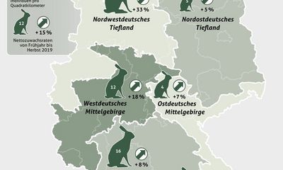 12 Feldhasen pro Quadratkilometer haben Jäger 2019 durchschnittlich in Deutschland gezählt, in Baden-Württemberg sind es sogar 14.