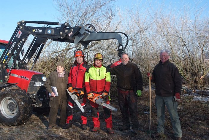 Mitglieder des HR Dornhan unter Leitung von Daniel Saile nutzten den letzten Frosttag im Januar für eine umfangreiche Entbuschung des Gewässers und der Ufer. Das Schnittgut wird gehäckselt und findet als Brennmaterial Verwendung.
